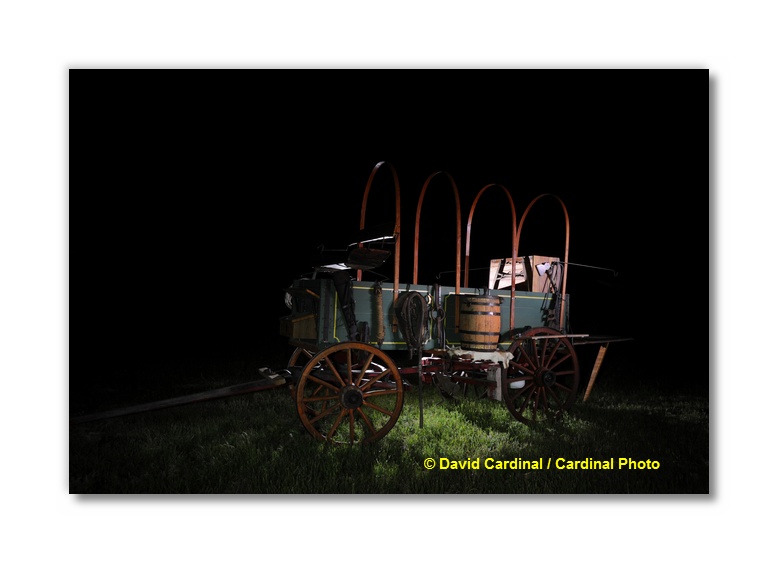 But the great thing about painting with light is that we can experiment with different effects. For the next shot we added an SB-900 behind the wagon set to 1/4 power. The wagon suddenly turned a lot more three dimensional and more interesting: